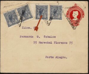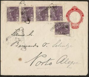 DESCRIÇÃO:Ano 192 ? - Inteiro Postal EN 69 (100Rs) selo de 20Rs Alegoria, circulado dentro de Porto Alegre, com carimbo do Correio...