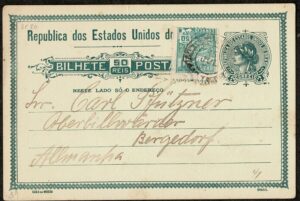 DESCRIÇÃO:Ano 1921 - Inteiro Postal BP 80 (50Rs) selo 50Rs Indústria (afixado de ponta cabeça e com inscrição marginal superior) Pela data...