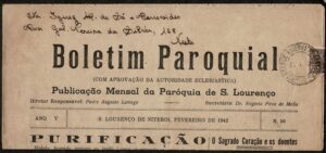 DESCRIÇÃO:Ano 1942 - Boletim Paroquial nº 50, circulado dentro da cidade de Niterói e porteado com selo de 20Rs aviação, mas colado...