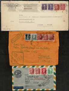 DESCRIÇÃO:Ano 195 ? /196 ? - 3 envelopes circulados com selo 50,00 Forças Armadas outros selos: Rio Grande do Sul para a...