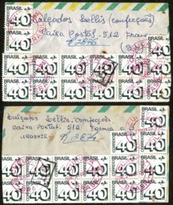 DESCRIÇÃO:Ano 1975 - 2 Envelopes registrados, saindo de Curuça (Pará - carimbo em vermelho) para Franca (SP) e em ambos temos 15...