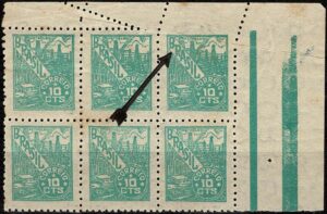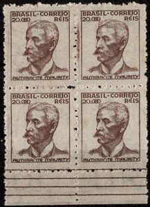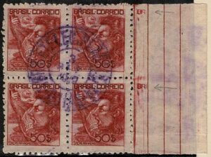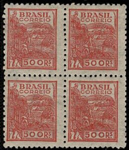 DESCRIÇÃO:* 447B - 600Rs Siderugia - Quadra com decalque invertido e deslocado......