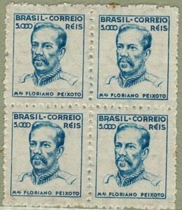 DESCRIÇÃO:**/* 452 - 5$000 Mal Floriano - Filigrana Casa + , papel fino - Quadra, 3 selos **, 1 * - 300...