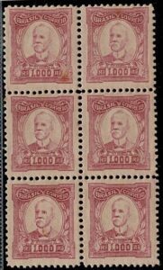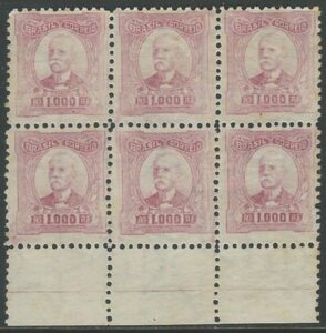 DESCRIÇÃO:* 334 - 1.000Rs Ruy - Bloco de 6 vertical - 180 UF...