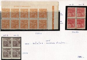 DESCRIÇÃO:◉ 188/190 (antiga numeração) Filigrana Linha vertical - "Estoque" com 37 selos, assim distribuído pelos faciais: 50Rs x 6, 100Rs x 25...