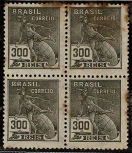 DESCRIÇÃO:* 202v (ano 1995) - 300Rs Mercúrio - Quadra com forte ferrugem - 144 UF...