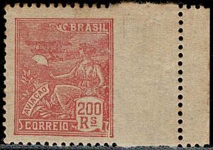 DESCRIÇÃO:* 201vL(antigo) - 200Rs Aviação - Selo com margem larga no lado direito....