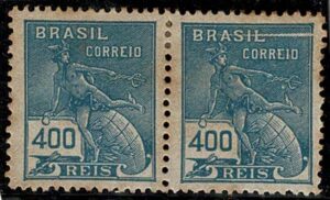 DESCRIÇÃO:* 179 - 80Rs Agricultura - Par horizontal , margem de folha, com grande distância no picote vertical lateral direito....