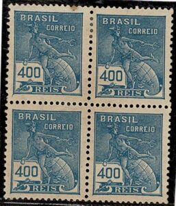 DESCRIÇÃO:**/* 203vC (ano 1995) - 400Rs Mercúrio – Quadra, ficando o 2º selo com a variedade (chapa riscada) Os 2 selos da...