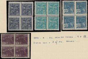 DESCRIÇÃO:* QUADRAS COM e SEM FILIGRANA - Filigrana Casa da Moeda - 4 diferentes faciais/selos, sempre em quadras e 2 selos com...