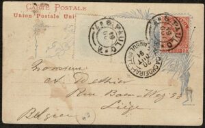 DESCRIÇÃO:Ano 1891 - Inteiro tipo BP 80Rs par selo 20Rs (afixado de ponta cabeça) circulado de São Paulo para a Bélgica, com...