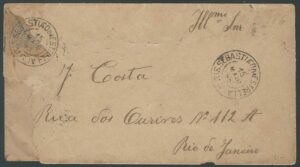 DESCRIÇÃO:Ano 1895 - Envelope circulado de São Sebastião da Estrela (MG) para o Rio de Janeiro com carimbo de transito chegada. Selo...