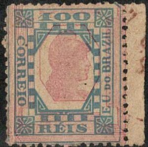 DESCRIÇÃO:(*) 78a - 100Rs tipografado - Variedade: deslocamento do picote vertical direito, não aparecendo as volutas...