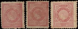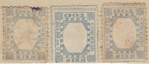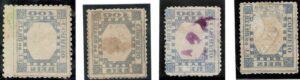 DESCRIÇÃO:◉ 79N - Quadro azul no verso - 4 exemplares, sendo 1 no picote grosso e 3 no picote fino - Todos...