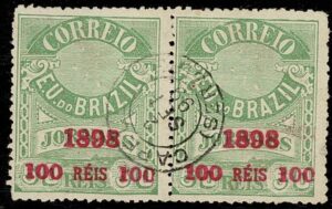DESCRIÇÃO:* 127D - 50/20 - Par horizontal, ficando o selo da direita com dupla impressão da sobrecarga. Falta 1 picote nele -...