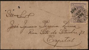 DESCRIÇÃO:Ano 1898 - Envelope circulado aparentemente dentro da cidade do Rio de Janeiro, com chegada e enviado no dia 5.11 (1 semana...