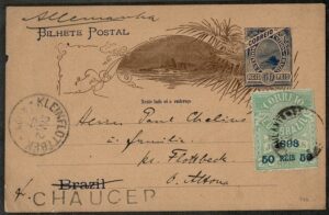 DESCRIÇÃO:Ano 1899 - Bilhete Postal (50Rs) + selo 50/20 (2ª série) circulado do Rio de Janeiro para a Alemanha, com chegada.....