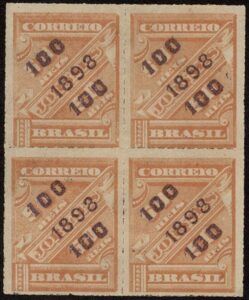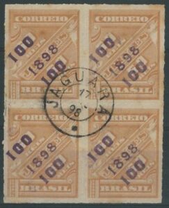 DESCRIÇÃO:◉ 125 - 200/100 - Quadra com centrado carimbo: Jaguará 17.Nov.98 - Forte ferrugem. Pede-se verificar - 140 UF = /- R$...