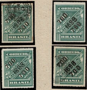 DESCRIÇÃO:◉/(*) 120 - 700/500 - Sobrecarga fina e grossa - 1 exemplar de cada, com e sem carimbo. Total 2 jogos ou...