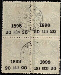 DESCRIÇÃO:◉ 126b - 20/10 Cinza - Quadra com duplo carimbo: Maceió 4.Mar.99 - (100 UF )...