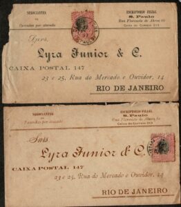 DESCRIÇÃO:Ano 1896 e 1897 - 2 envelopes timbrados circulados para o Rio de Janeiro, com carimbo de transito + chegada. Ambos com...