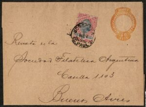 DESCRIÇÃO:Ano 1896 - Cinta 40 Réis selo de 10 Réis, circulado de Sorocaba para Buenos Aires e endereçado à Associação Filatélica Argentina...