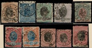 DESCRIÇÃO:CARIMBOLOGIA ◉ PIRACICABA (SP) Lote com 10 selos com carimbos desta cidade, havendo variações no carimbo e na maioria dos selos...