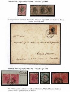 DESCRIÇÃO:CARIMBOLOGIA ◉ PIRACICABA (SP) Folha expositiva montada, contando 2 tipos diferentes de obliteração desta cidade. No total são 3 selos isolados +...