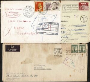 DESCRIÇÃO:TAXADOS NA SAÍDA - Lote com 15 peças, todas vindas para o Brasil e com carimbo e/ou indicação da taxa, mas nenhuma...