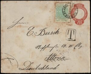 DESCRIÇÃO:Ano 1893 - Inteiro Postal EN24 (100Rs) selo Cruzeiro de 20Rs, circulado do Rio de Janeiro para a Alemanha. Carimbo "T" frontal....