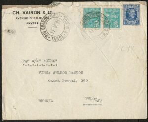DESCRIÇÃO:Ano 1931 - Envelope timbrado vindo da Bélgica para Pelotas, com chegada. Selo regular com perfin, mas sem carimbo. Daí talvez ter...