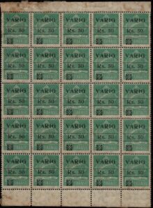 DESCRIÇÃO:* 6 - 50/1.300 - Bloco vertical com 25 selos (5x5) 550 UF ....