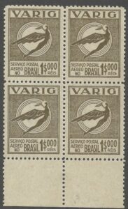 DESCRIÇÃO:*/ ** 46Ah - 1.000Rs - Quadra margem de folha e filigrana horizontal nos 2 selos inferiores – 5.000UF = /- R$...