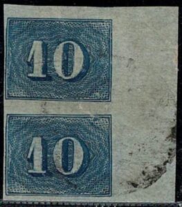 DESCRIÇÃO:◉ 19a1 ou 19a2 ? - 10Rs - Par vertical, margem direita de folha. Margem esquerda bem rente, mas não tocando o...