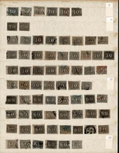 DESCRIÇÃO:◉ + GATO - Lote com 66 selos encaixados em folha de classificador, assim dividido pelos faciais: 10 Réis (6 selos) 20...