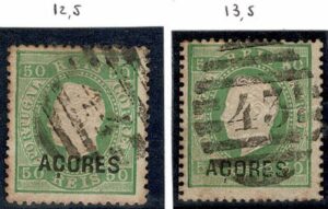 DESCRIÇÃO:AÇORES - ◉ 23 - 2 selos nos picotes 12,5 e 13,5 - 105 Euros pelo Yvert e 150 Euros pelo Afinsa......