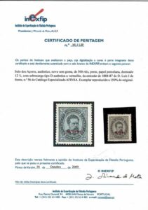 DESCRIÇÃO:AÇORES - (*) Yvert 60 e Afinsa 58 - Picote 12,5 - Regomado - Foto Certificado de Expertização Inexfip - 120 Euros...