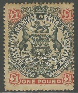 DESCRIÇÃO:AFRICA DO SUL (CIA BRITANICA) - * 56 - 1 Libra. Goma escurecida - 600 Euros......