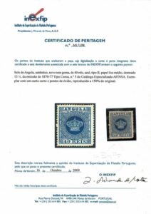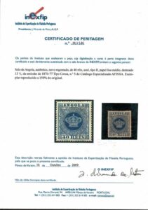 DESCRIÇÃO:ANGOLA - (*) Yvert 5(B) e Afinsa 5 - Picote 13,5. Regomado. Foto Certificado de Expertização Inexfip - 220 Eur pelo Yvert...