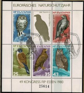 DESCRIÇÃO:BULGÁRIA ◉ Bloco 95B com carimbo comemorativo alusivo (Aves de Rapina) 70 Euros....