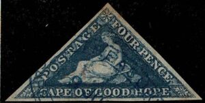 DESCRIÇÃO:CABO DA BOA ESPERANÇA - ◉ Yvert 4 - Todas as margens intactas. Carimbo azul - 65 Euros....