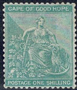DESCRIÇÃO:◉ CABO DA BOA ESPERANÇA - Yvert 7 (variedade de cor) Stanley Gibbons 18b - 4 largas margens, sendo que a inferior...