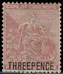 DESCRIÇÃO:(*) CABO DA BOA ESPERANÇA - Yvert 3, Stanley Gibbons 5a - Todas as margens intactas - 600 Euros no Yvert e...