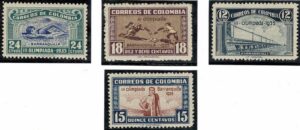 DESCRIÇÃO:◉ COLÔMBIA - 29, 33, 44 e 50 - Margens conforme imagem na web. Pontos de ferrugem - 58 Euros....
