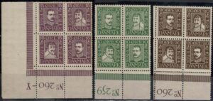 DESCRIÇÃO:*/(*) DINAMARCA - 153/64 - Série completa em quadras, canto de folha numerados - Os 4 da cor verde, sem goma -...