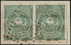 DESCRIÇÃO:◉ ECUADOR - 2 - Par horizontal sobre fragmento com carimbo mudo. Pontos de ferrugem - 100 Euros ....
