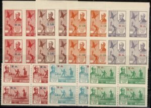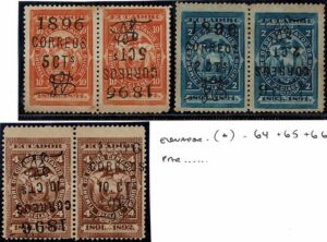 DESCRIÇÃO:(*) ECUADOR - 64 65 66 - Todos em pares horizontal, ficando 1 selo com a sobrecarga normal e a outra invertida....
