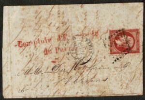 DESCRIÇÃO:FRANÇA - 17A - Sobre grande fragmento de envelope. Carimbo de pontos - 65 Euros ....