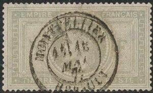 DESCRIÇÃO:FRANÇA - ◉ 33 - 5F Napoleão - Duplo carimbo circular (1 borrado) Pontos de ferrugem e defeito no canto inferior esquerdo...