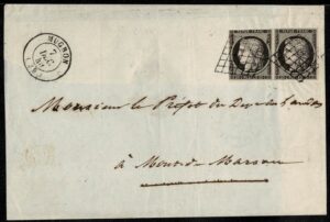 DESCRIÇÃO:FRANÇA - HISTÓRIA POSTAL - Ano 1849 - Espécie de Cinta ? circulada internamente com chegada. Porteado com par selo Yvert 3...